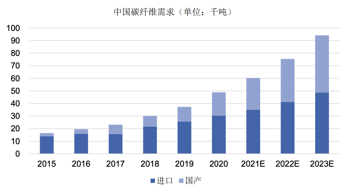 据中复神鹰此前公告数据显示,2020年国内碳纤维需求中,进口碳纤维供应量为3.04万吨,占需求量的62%;国产碳纤维供应量为1.84万吨,占需求量的38%。