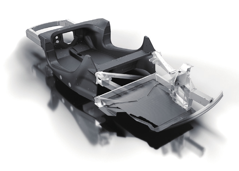 portant;">汽车后地板设计。后地板组件(此处显示了包括连接到车辆底盘其他部分的渲染图)展示了迈凯伦公司创新的预成型和胶带沉积工艺。截至2022年底,第一批结构部件已完成制造并在车辆上进行相关测试。