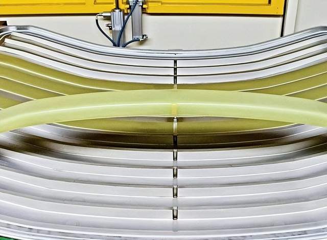Cannon Tipos钢制模具的设计压力最高可达120巴。最小化的微孔确保了树脂与固化剂在恒定温度下的最佳反应,最大偏差为2℃。此外,在注射阶段有最小的背压,真空时间应最大化,以避免冲刷损失和气泡的产生。由于高度抛光的腔体与Coriolis的预制件技术相结合,部件的表面质量特别好。