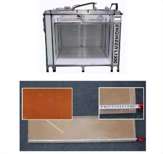 Fig. 11 High-precision and large-size additive manufacturing equipment for PEEK (Upper) and 1.3 m honeycomb structure radome (Lower)