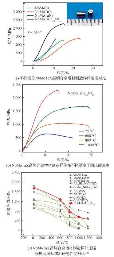图 5 增材制造NbMoTaX系高熵合金性能特点