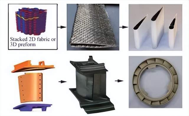 CMC-SiC指碳化硅纤维增强碳化硅(SiC/SiC)和碳纤维增强碳化硅(C/SiC) 。CMC-SiC是一种轻质、耐高温、冷却少甚至无需冷却的新型复合材料,是目前国际公认的最具发展潜力的发动机热端部项材料之一,即保留了纤维耐高温、高强、高模、耐腐蚀、抗蠕变、材料热膨胀系数小等优点,同时又克服了陶瓷材料抗冲击性能差、断裂韧性低的缺陷。