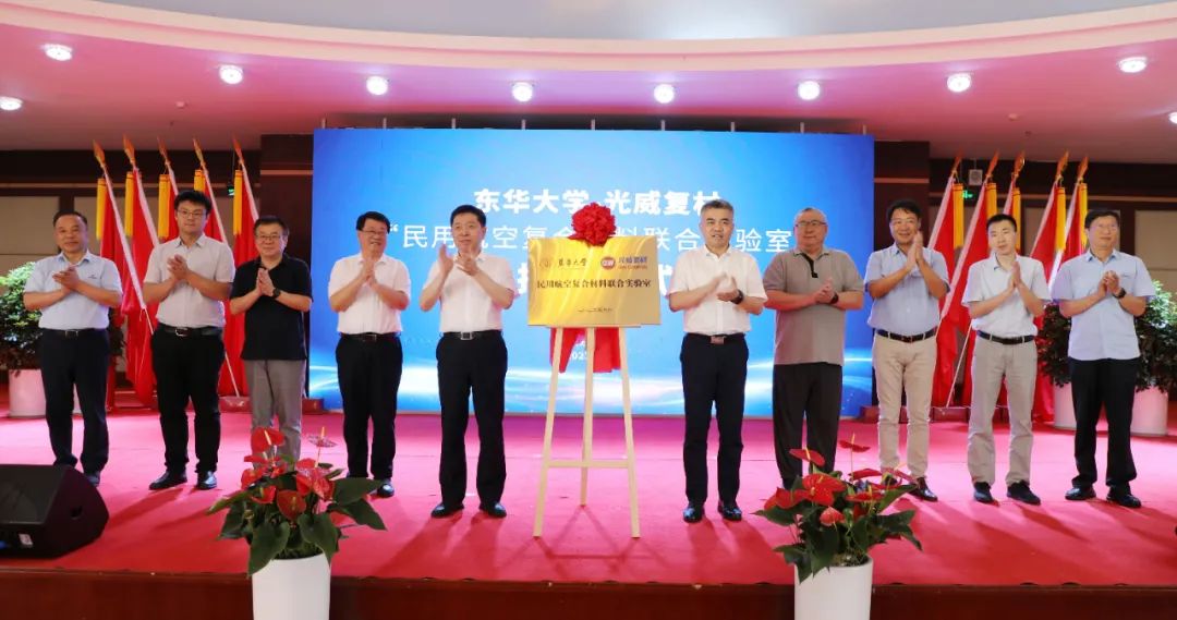 7月27日,威海光威复合材料股份有限公司与东华大学签署设立奖学金协议并举行民用航空复合材料联合实验室揭牌仪式。中国工程院院士、东华大学校长俞建勇,民用航空复合材料协同创新中心主任、教授陈春海,中国商飞公司专家、上飞公司副总工程师刘卫平,威海市委常委、秘书长李建,高新区党工委书记、管委会主任梅延良,光威集团董事长陈亮,光威复材董事长卢钊钧等出席活动。