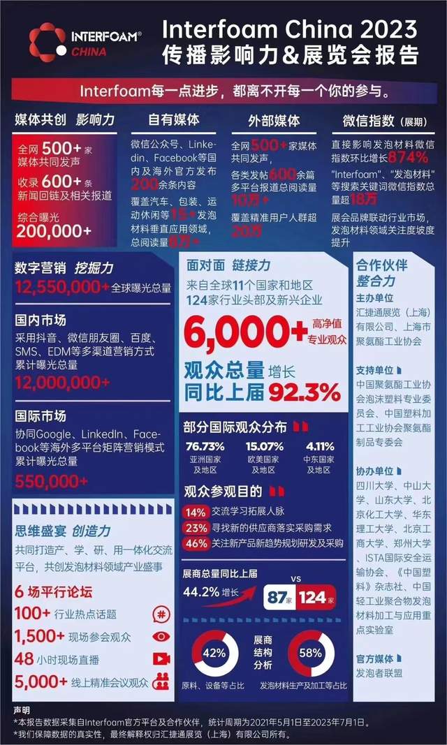 此外,官方还发起48小时高密度现场直播,三天内吸引了5000+线上观众的收看记录。从媒体传播、数字营销、展商&观众、论坛报告、合作伙伴等五个维度来看,这场展会无疑是一次成功的盛会,进一步扩大了展会的影响力和知名度,为发泡材料行业的发展带来了积极影响。