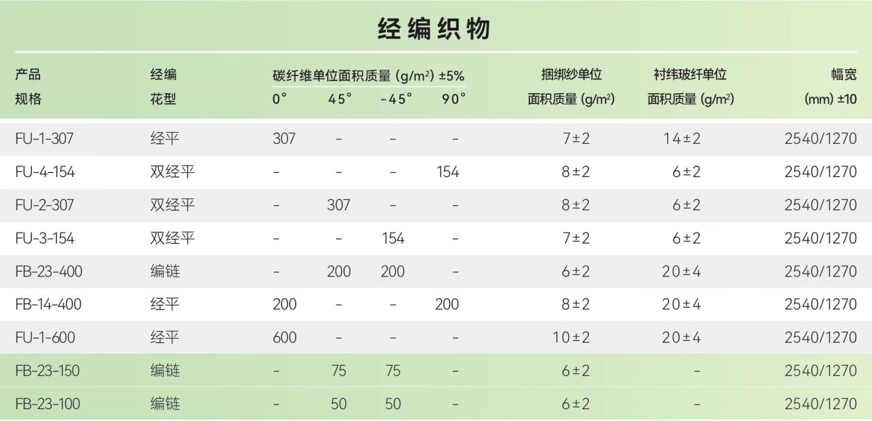 引入德国先进的经编织物生产线,采用两步法进行经编织造,大幅宽2540mm,使用国产12K碳丝,克重低至50g/m²,更有利于进行经编织物的预浸生产,为广大客户提供了更多铺层设计的经济性解决方案。