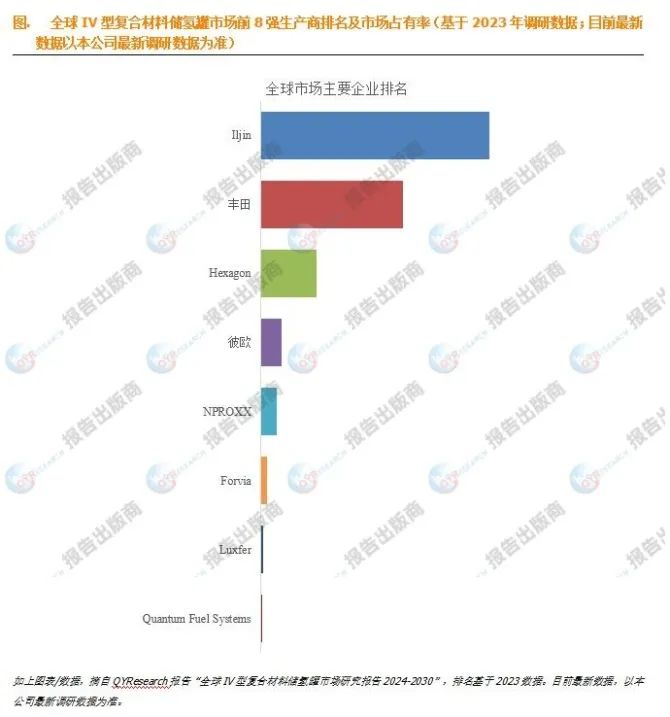在全球范围内,IV型复合材料储氢罐的生产商众多,其中不乏一些具有强大实力和广泛市场影响力的企业。如Iljin、丰田、Hexagon、彼欧和NPROXX等,都是该领域的佼佼者。这些企业通过不断创新和技术升级,为全球氢能储存市场提供了优质的产品和服务。