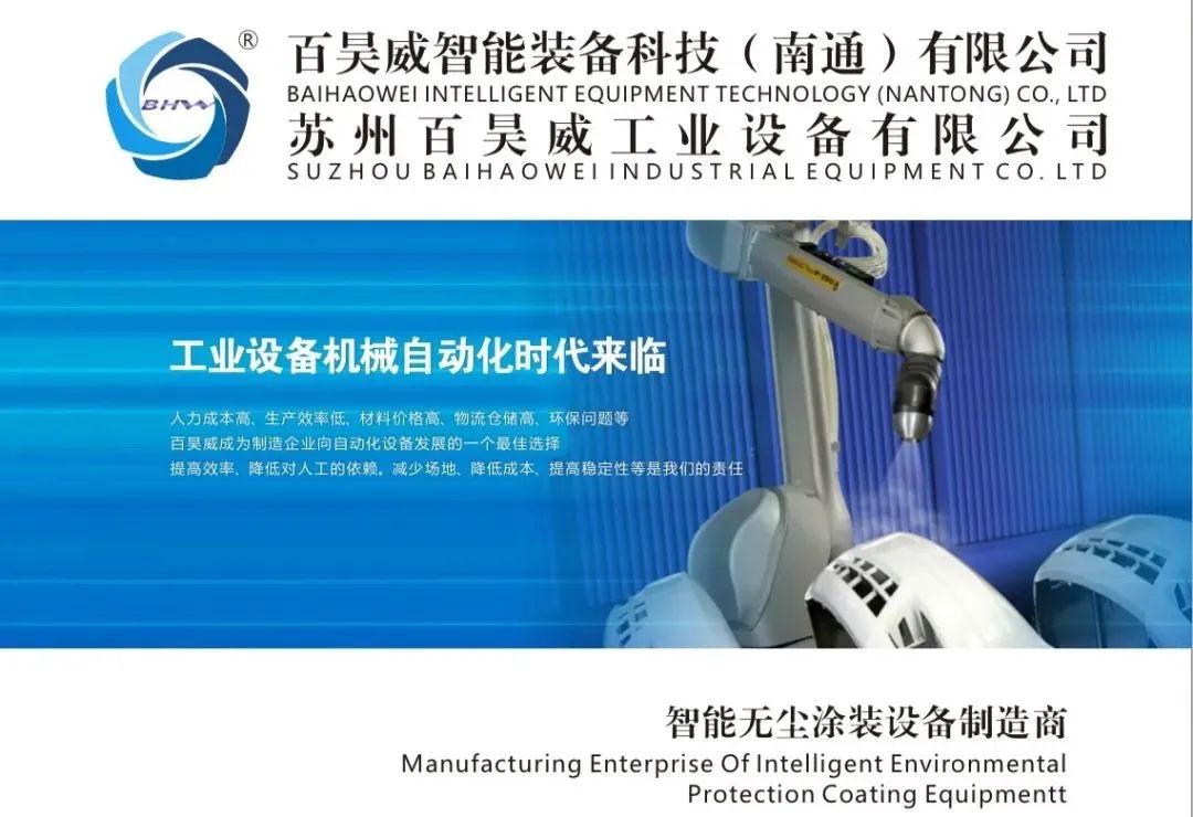 百昊威,多年深耕于表面处理行业,业务涉及汽车、摩托车、自行车、IT产品、3C产品、家电、炊具及工程机械、等行业的自动化涂装业务;设备销售区域不仅遍布中国且远销欧洲、东南亚等地区;在涂装领域拥有丰富的经验,长期与全球头部涂装核心喷枪喷孔等企业保持合作与交流,服务于广大涂装用户,给予用户最合理高效的设计方案!
