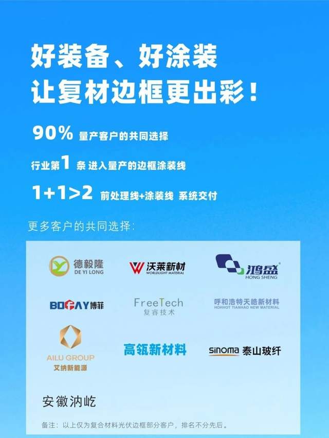 第一期过渡厂房的LP系列涂装线与前处理线也在近日安装完成进入调试环节,复材边框新贵-高瓴新材即将进入复材边框量产阶段。