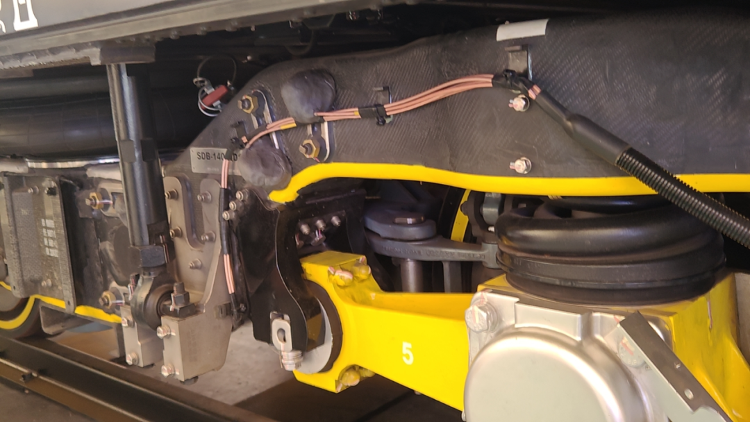 该转向架横梁采用中复神鹰T700级碳纤维,与传统金属材料的地铁车辆相比,碳纤维地铁车辆的转向架构架减重50%。有“新材料之王”之称的碳纤维,强度是钢铁的5倍以上,但重量不到钢铁的1/4,集轻质、高强度、抗疲劳、耐腐蚀等优点于一身,具有更轻更节能优势,是轨道车辆轻量化的绝佳材料。