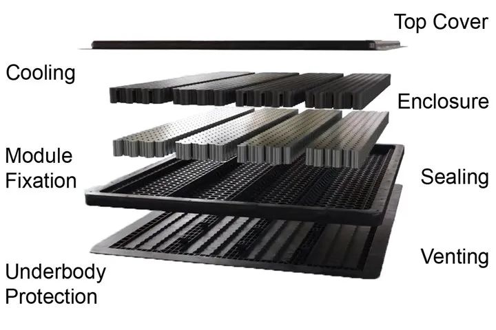 考特斯与西本韦斯特公司、阿克拉塑料有限公司、骑士和恩格尔合作,成功将热、塑料和热塑性复合材料工程结合在一起,将高性能直接冷却集成到其五声道电池外壳中。该过程称为两相浸入式冷却,可实现高传热率,同时在最佳电池工作温度下最大限度地提高电池组内的温度均匀性。电池本身在制冷过程中充当蒸发器,因此电池热系统可以安全、永久地管理高充电率下的热负荷。