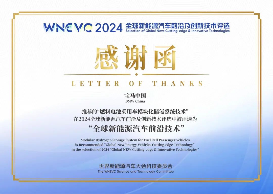 【汽车】宝马自研“燃料电池乘用车模块化储氢系统”,获世界新能源汽车大会“前沿技术”奖