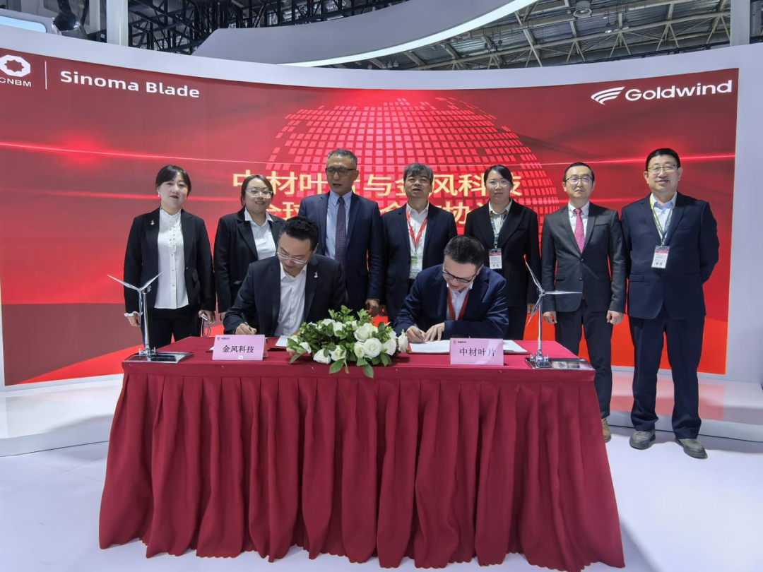 10月17日,中材科技风电叶片股份有限公司与金风科技股份有限公司举行了全球战略合作协议签约仪式。金风科技风电产业集团副总经理兼供应链中心总经理、集团供应链中心总经理叶吉强与中材叶片党委书记、总经理徐俊签订双方全球战略合作协议。金风科技副总裁、金风国际董事长吴凯,中材叶片董事长王欣见证双方签约。此举是双方合作的里程碑,更是全球风电产业发展的新标杆。