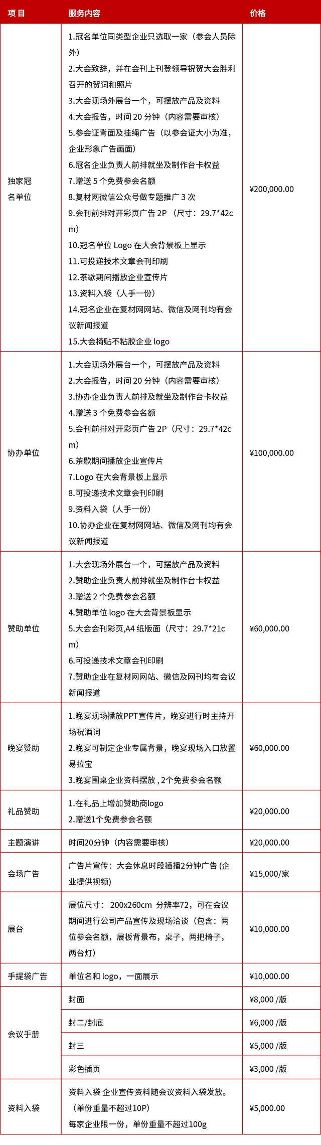 复材网非会员单位:3800元/人 、会员单位:1900元/人(含全部相关会议资料、会议通行证及会议用 餐)。同一单位四人参会,免一人会费。
