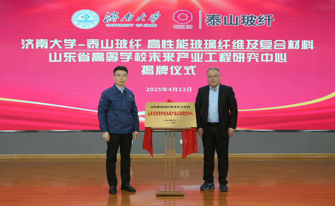 4月12日,泰山玻纤与济南大学共同建设的“高性能玻璃纤维及复合材料山东省高等学校未来产业工程研究中心”揭牌仪式在泰山玻纤总部隆重举行。