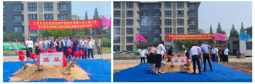 6月3 日,江苏天龙玄武岩连续纤维股份有限公司三期工程玄纤复合材料项目及科创会议交流中心在待建区域举行了开工仪式。公司董事长邱迎东率高管团队及公司员工代表、施工方代表共同见证了这一具有里程碑意义的时刻。