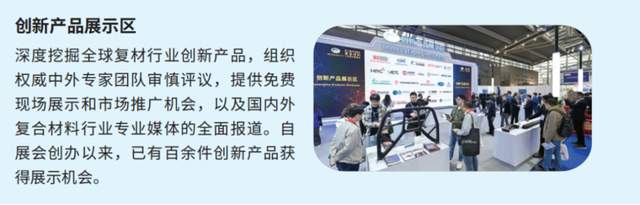 创新产品展示区:展示高性能生物基热塑性纤维复合材料、高强高模型碳纤维等30余项创新产品。