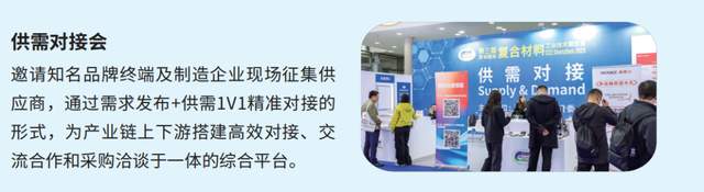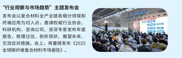 行业趋势发布会:发布超材料、无人机、碳纤维、热塑性复合材料等市场数据,邀请行业专家解读行业趋势。