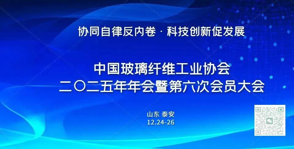 2025年是“十四五”发展收官之年,也是中国玻璃纤维工业走到全球玻璃纤维产业发展十字路口的关键转折之年。为凝聚行业发展共识,明确全行业“十五五”规划发展指导思想,全面实施科技创新驱动发展战略,培育和发展行业新质生产力,协会以“协同自律反内卷,科技创新促发展”为主题,定于2025年12月24日至26日,在山东省泰安市召开中国玻璃纤维工业协会第六次会员大会暨二〇二五年年会。