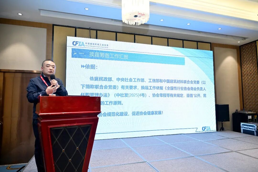 理事会由中国建筑材料联合会党委常委、副会长/中国玻璃纤维工业协会会长刘建华主持,中国玻璃纤维工业协会刘长雷秘书长向理事会汇报协会换届筹备工作情况,并向理事会提交《中国玻璃纤维工业协会第五届理事会工作报告》等14项议案。中国玻璃纤维工业协会刘长雷秘书长向理事会汇报协会换届筹备工作情况,并向理事会提交《中国玻璃纤维工业协会第五届理事会工作报告》等14项议案。