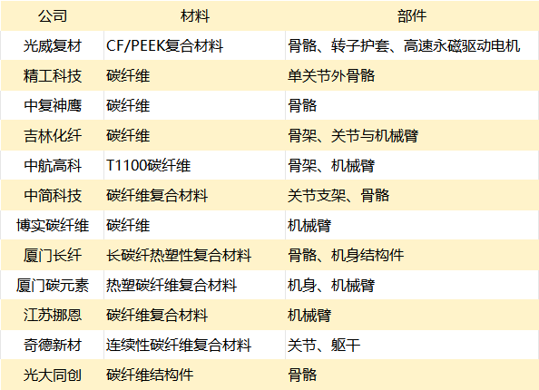 在复合材料领域,碳纤维复合材料尤为关键。其凭借高比强度、高比模量、轻量化、长寿命、易加工等综合性能优势,正逐步应用于人形机器人的核心承载部位,包括机器人骨架、机械臂、连杆结构、关节组件及高负载承载结构等,对提升整机功能性运作效果显著。具公开资料显示,使用碳纤维复材制成的机械臂整体质量较铝合金减轻30%,臂架重心和震动均有所降低。