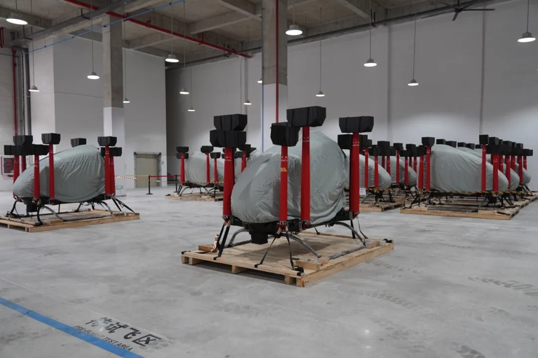 此次即将量产的EH216-S机型,是亿航智能自主研发的旗舰产品,更是全球无人驾驶eVTOL领域的标杆之作。该机型采用8轴16旋翼构型,机身长6.05米、宽5.73米、高1.93米,可折叠设计大幅提升场地适配性,搭载两人的同时还预留18寸行李箱储物空间。动力上采用纯电驱动,最大飞行速度达130公里/小时,最大航程30公里,续航25分钟,充满电仅需2小时,且通过12组电池冗余设计和全备份关键部件,构建起商用干线客机级别的安全防护体系。