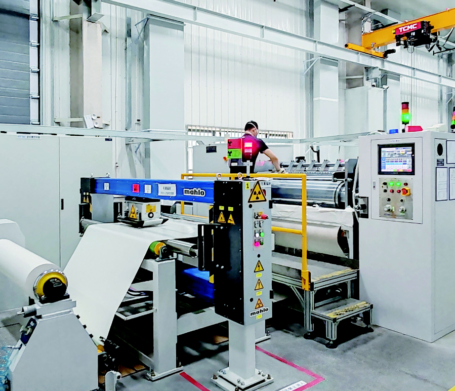 配备德国Mahlo高精度β测厚仪,具备自动检测和调整功能,稳定检测和控制涂膜克重;
