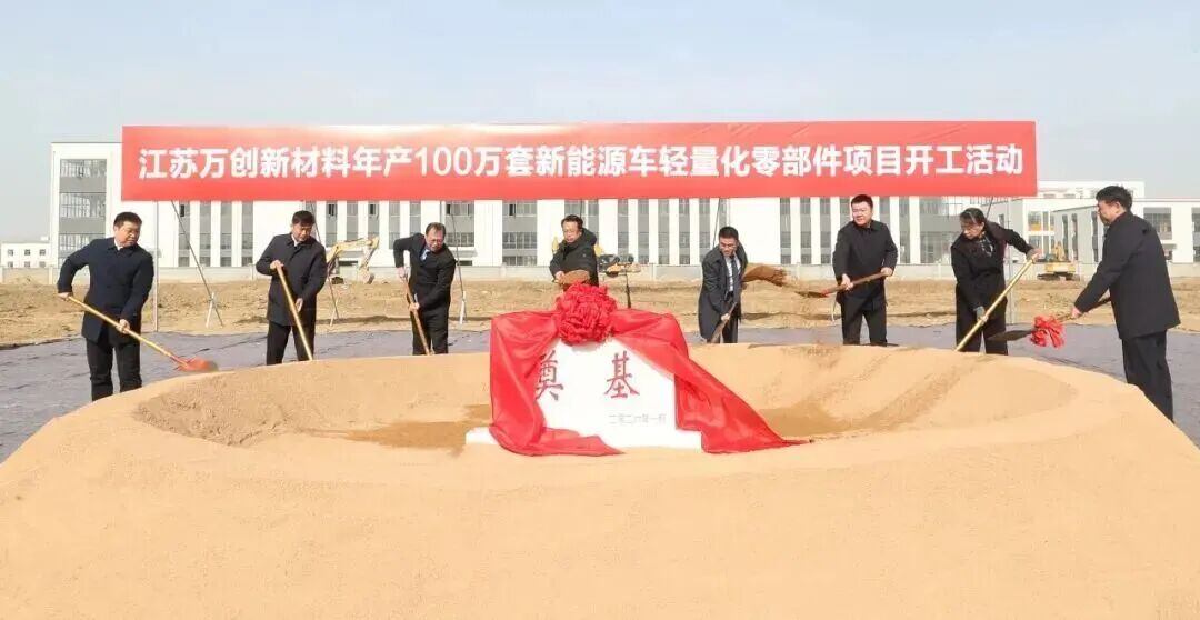 近日,江苏万创新材料年产100万套新能源车轻量化零部件项目开工活动在淮安高新区举行。