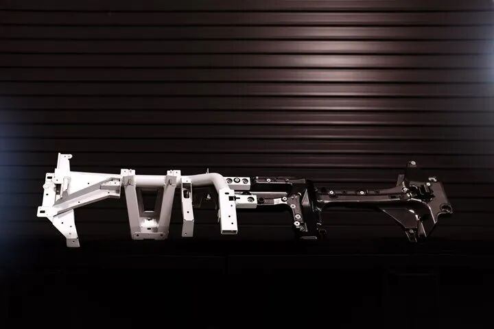 该车身横向横梁横贯仪表盘后方的整车宽度,是汽车驾驶舱的关键结构承力部件,对保障乘客安全起着核心作用,可保护车内乘员并为安全气囊提供安装基础,同时还能降低噪音与震动,让座舱环境保持静谧、舒适。这款横梁一改传统的镁合金或纯钢材质,捷豹路虎打造的全新横梁结构为混动复合设计,融合了纤维增强复合材料与钢材双重特性。