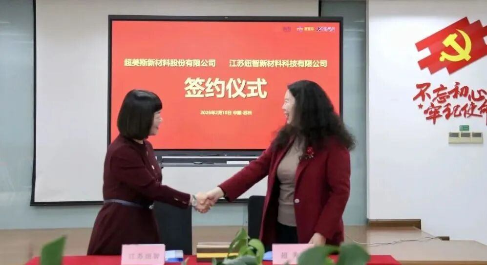 2月10日,超美斯新材料股份有限公司与江苏纽智新材料科技有限公司正式签署全面战略合作协议。