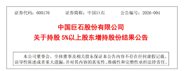 2026年3月3日,中国巨石发布一则公告《关于持股5%以上股东增持股份结果公告》。