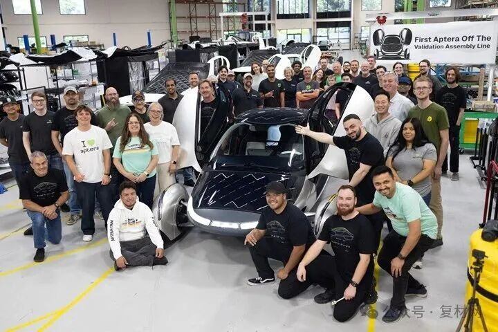 Aptera首台SMC复合材料车身太阳能电动车驶下验证装配线