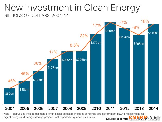 2014全球清洁能源投资增16%至3100亿美元