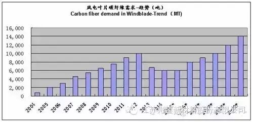 2014年国内风电叶片有明显回暖趋势,所以,在2013-2015低谷后,风电叶片对碳纤维的需求依然会攀升。