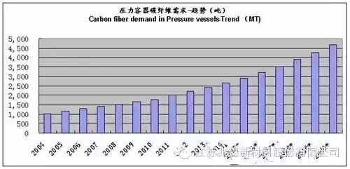 2014年,压力容器市场大的看点是丰田宣布燃料电池企业的量产,由此会带来高压氢气瓶对碳纤维的需求,同时,无论是氢气存储、转运、加气站的容器,都会对碳纤维的需求产生拉动作用。
