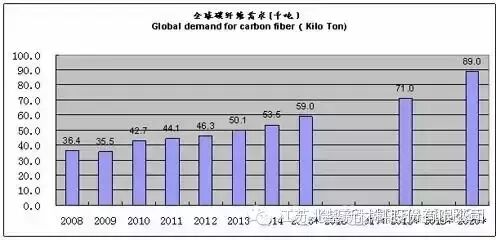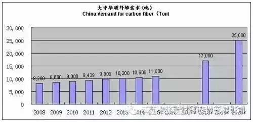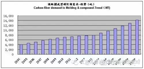 市场的发展趋势(碳纤维需求数量)如下图: