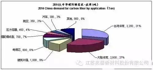 笔者曾经在2013年2月,与申屠年先生及台湾 复合材料同业公会的赵珏秘书长合作,在申屠年先生主持的《高性能纤维与应用》杂志上发表了《大地区碳纤复材产业现况与合作发展建言》,其间,在业界众 多同仁的帮助下,对大地区2011年碳纤维市场做过比较细致的统计。至今,大地区以体育应用为主的碳纤维市场格局没有发生根本性变化,所 以,2014年的数据是基于2011年数据和市场的发展推导出来的。