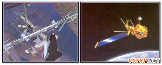 高模量碳纤维质轻、刚性、尺寸稳定性和导热性好,因此很早就应用于人造卫星结构体、太阳能电池板和天线中。现今的人造卫星上的展开式太阳能电池板多采用碳纤维复合材料制作,而太空站和天地往返运输系统上的一些关键部件也往往采用碳纤维复合材料作为主要材料。