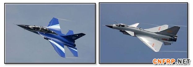 碳纤维复合材料由于重量轻、轻度高,在新型战机制造中大量采用, L-15“猎鹰”教练机就大量采用了这种复合材料歼10战斗机大量采用复合材料,制作机身部分零件,以降低重量。
