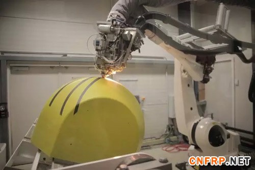 慕尼黑通用研究中心,图中的自动化机械化正在将碳纤维放置在模具上。