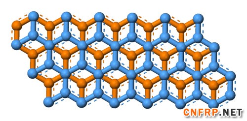 石墨中两个相邻的面,表明石墨的晶胞属于六方晶系