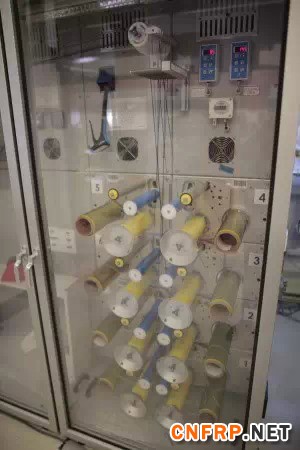 碳纤维装配架,冷冻贮存着浸泡过环氧树脂的碳纤维,将在另一个房间的机器人手中固化成型。