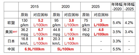上表是工信部官网公布的主要和地区燃料消耗量标准目标对比。非常明显,几个主要大国都对汽车的油耗都有了一个明确的限制规定。