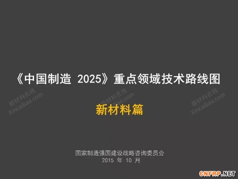 10月30日,共和国工业和信息化部官方网站正式公布《<制造2025>重点领域技术路线图(2015年版)》电子版,明确了新材料产业等10大领域以及23个重点发展方向,新材料在线时间图解“《制造2025》重点领域技术路线图”微信资讯(wribao.php230.com)。。