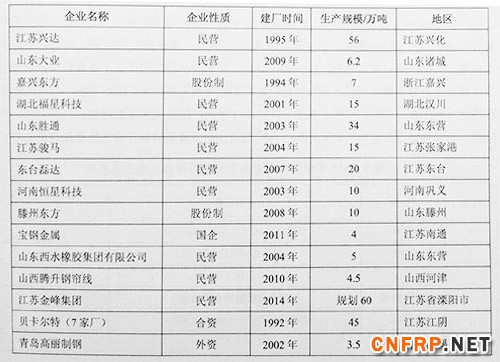 注:表中为中橡协骨架材料专业委员会会员单位统计数据