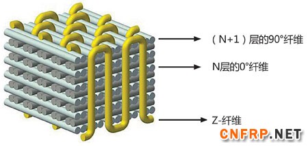 图2. SAERTEX 无卷曲3D 织物的纤维结构示意图。