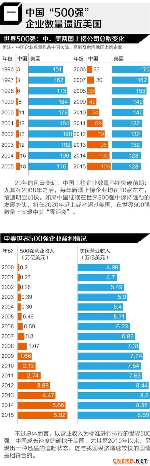 2015年500强榜单显示,企业上榜数量仅次于美国,位居第二。