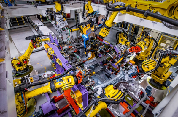 车身和涂装车间实现双100%自动化率(共有386台机器人),超越德系的铁西工厂(自动化率高93%)。