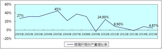 图2:2001年-2015年玻璃纤维纱产量增长率示意图