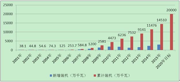 数据来源:CWEA,图中显示数据为累计装机容量。
