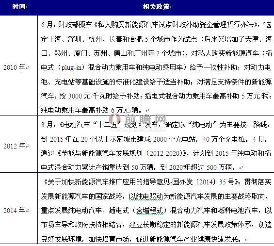 2010-2014年新能源汽车部分政策汇总